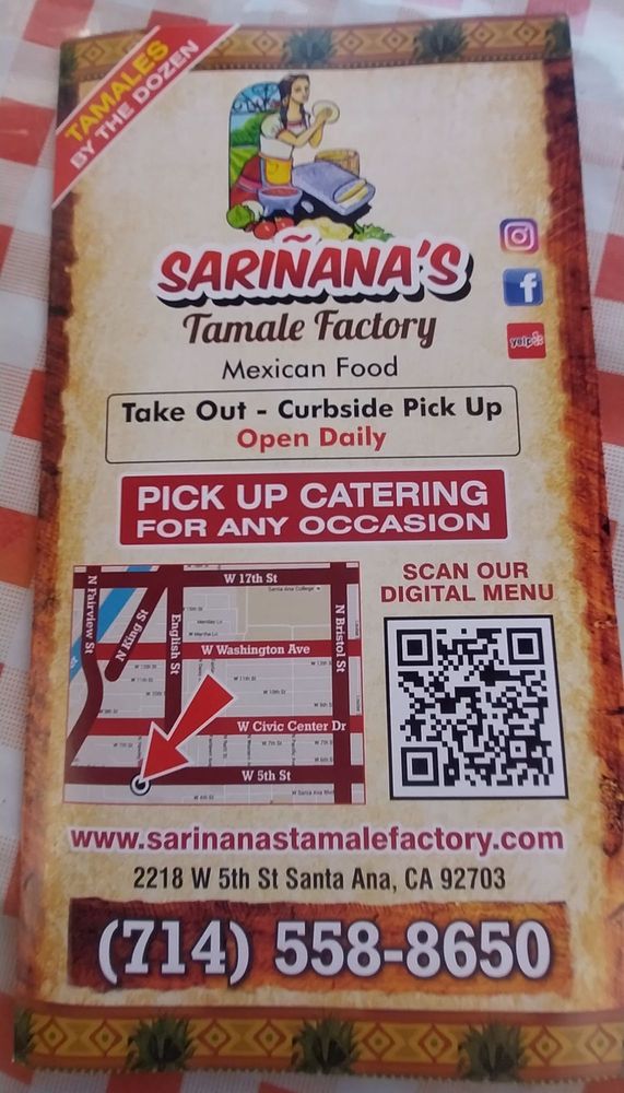 Sarinana's Tamale Factory, located in Santa Ana, CA, is a hidden gem known for its authentic Mexican cuisine. With a focus on tamales and hard shell tacos, this family-owned restaurant offers a variety of flavorful dishes. Customers rave about the quality of the food, with some favorites being the pork tamales and crunchy beef tacos. The cozy atmosphere, limited seating, and friendly staff add to the charm of this establishment. Whether you're looking for a quick lunch or a leisurely dinner, Sarinana's Tamale Factory is a must-visit for anyone craving traditional Mexican flavors. Don't miss out on their happy hour specials and delicious homemade drinks like Jamaica.